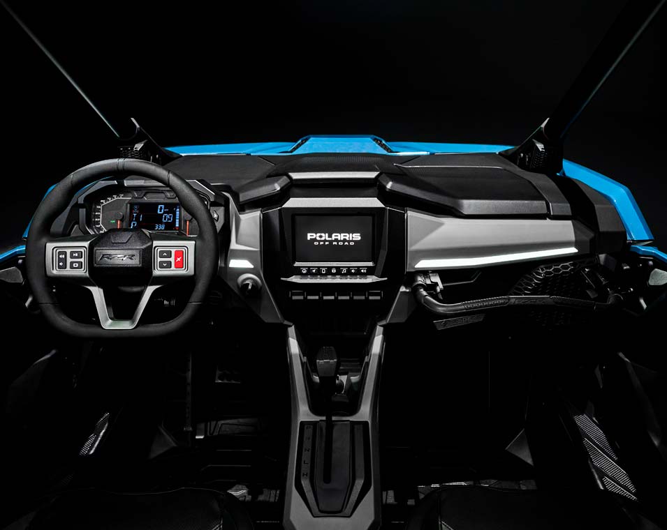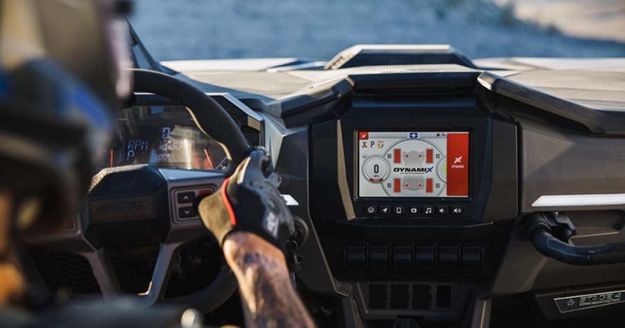 RIDE COMMAND® 7” Glove-Touch Display: DYNAMIX 2.0 Visualizer, Built-In GPS, Group ride (cell-based or GPS based), Topographic Mapping, Bluetooth & USB Smartphone Connectivity, AM/FM & Weather Radio (Accessory Speakers Required - Sold Separately), In-Vehicle Communications Capable With Optional Sena Headsets, Polaris P.A.S.S Anti-Theft System. Dual-sweep Analog Dials w/ 4" LCD Rider Information Center: User Selectable Blue/Red Backlighting & Brightness, Programmable Service Intervals. Digital Instrumentation: Speedometer, Tachometer, Odometer, Tripmeter, Clock, Hour Meter, Gear Indicator, Fuel Gauge, Coolant Temperature, Voltmeter, Service Indicator and Codes, Seat Belt Reminder Light, Gear Indicator, DC Outlet.
